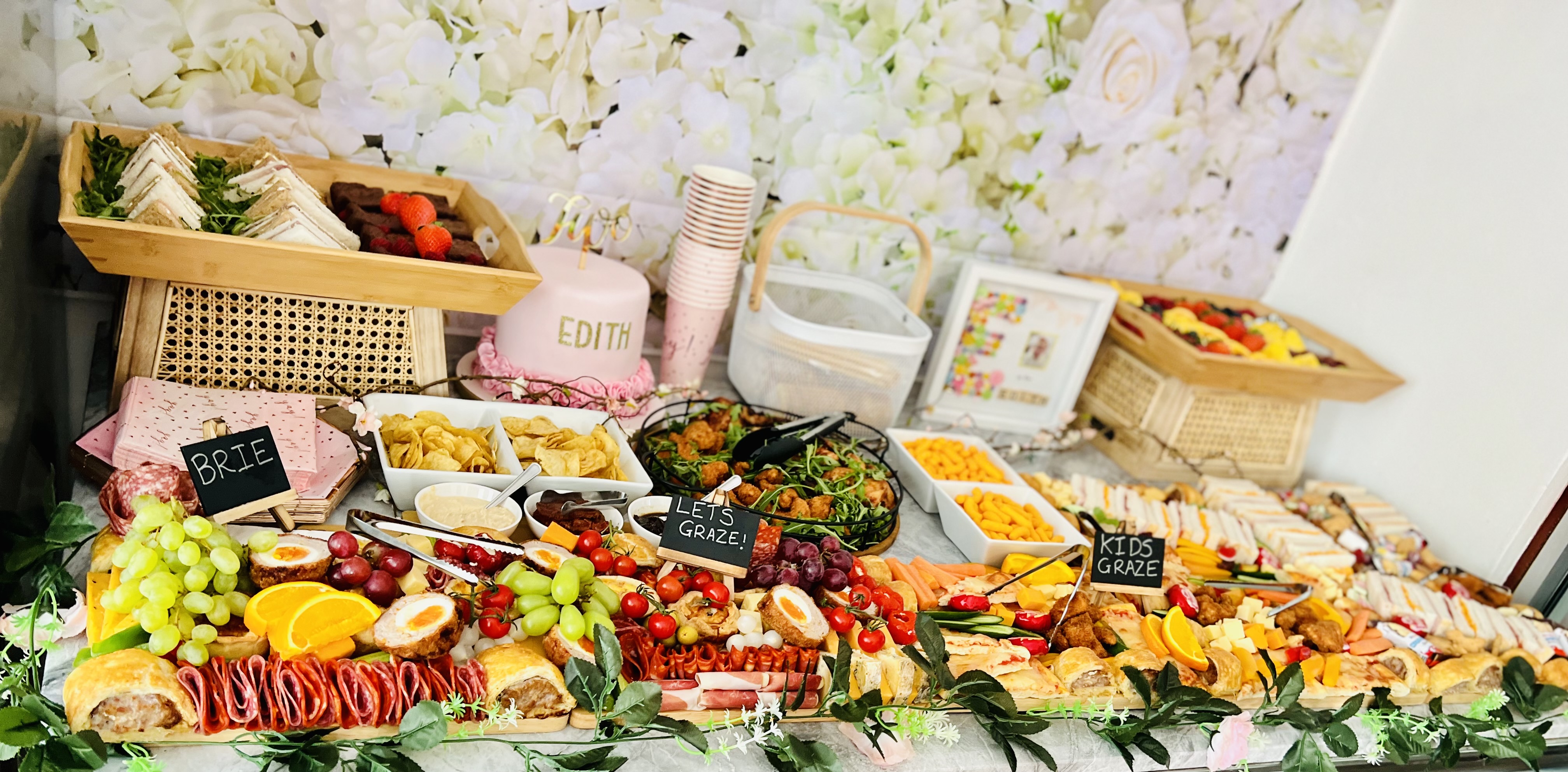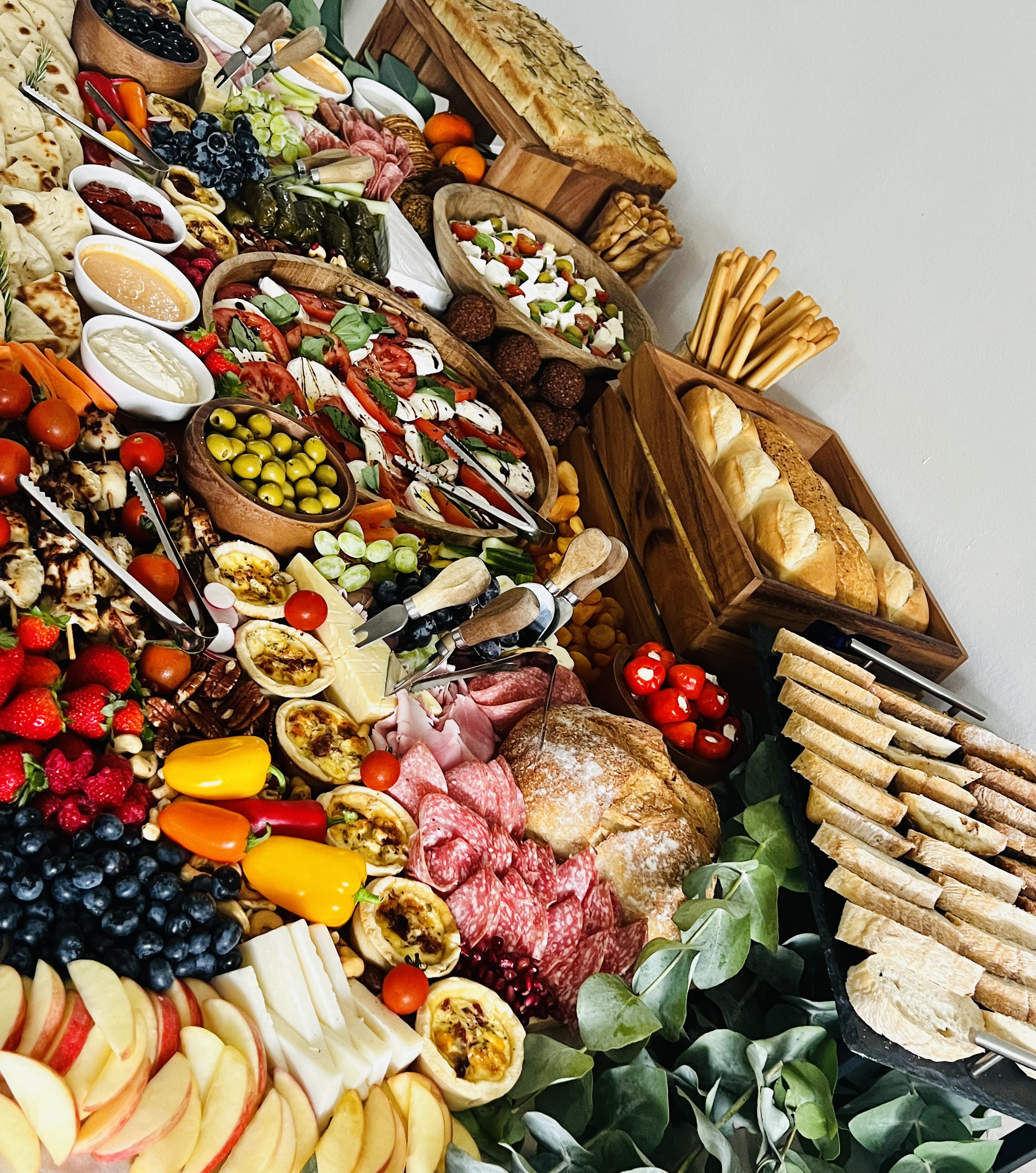 Immerse yourself in a visual feast as bountiful displays of gourmet delights, including artisanal cheeses, cured meats, fresh fruits, and more, create a stunning centerpiece for your event. Elevate your gathering with an interactive and unforgettable grazing experience that will leave your guests in awe.